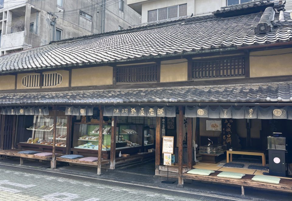 本家菊屋は、1585年に秀長の郡山城入城と城下町づくりをきっかけに創業し、城の入口で売られていた名物「御城之口餅」は兄の豊臣秀吉 に気に入られたという伝承も残る、奈良でいちばん古い和菓子店として400年以上郡山の歴史とともに愛され続けている老舗でフリータイム。