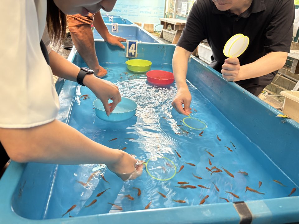 奈良・大和郡山市の “金魚のまち” を象徴するお土産屋さん「こちくや」の金魚すくい道場で、童心に帰って金魚すくい体験をお楽しみください。